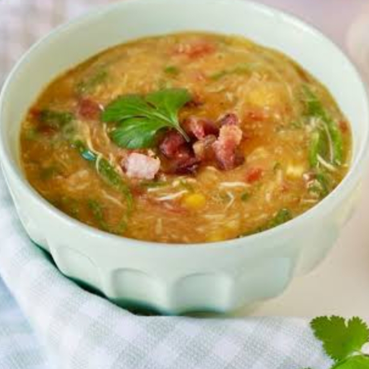 creme de batata salsa com bacon e frango desfiado e temperos naturais