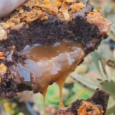 Geladinho gourmet de pé de moleque cremoso com doce de leite, textura rica e sabor marcante. Doce na medida certa e cheio de crocância.