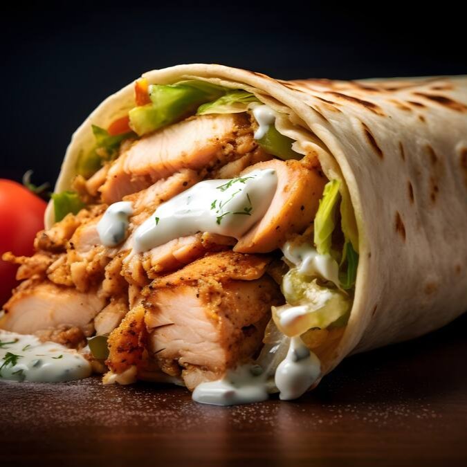 A combinação perfeita de texturas! Delicioso pão sírio tostado, recheado com tiras de frango empanado super crocantes, nossa pasta de alho especial da casa, alface americana fresquinha, tomate e batata frita sequinha. Uma explosão de sabor a cada mordida.