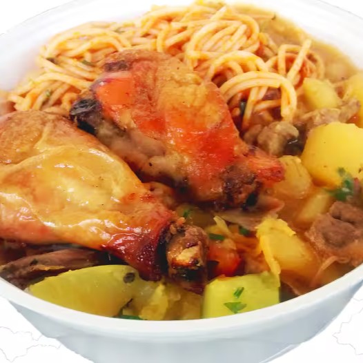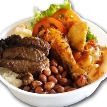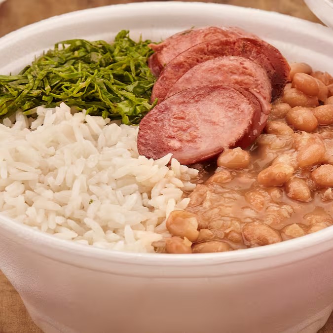 marmita p acompanha arroz branco ,feijão , macarrão farofa, ovo