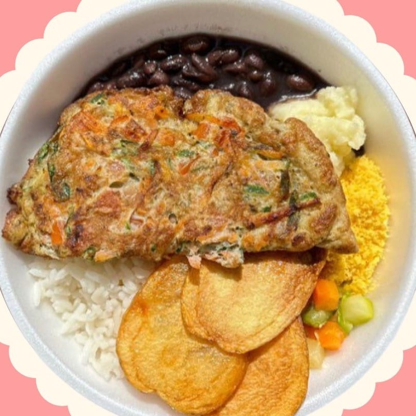 ️ Experimente nossa Marmita Grande de Omelete Vegetariana! Uma refeição completa e deliciosa, acompanhada de arroz soltinho , feijão saboroso , purê cremoso e legumes refogados do Dia . Um prato nutritivo, reconfortante e feito com ingredientes fresquinhos para você aproveitar uma alimentação saudável e cheia de sabor!