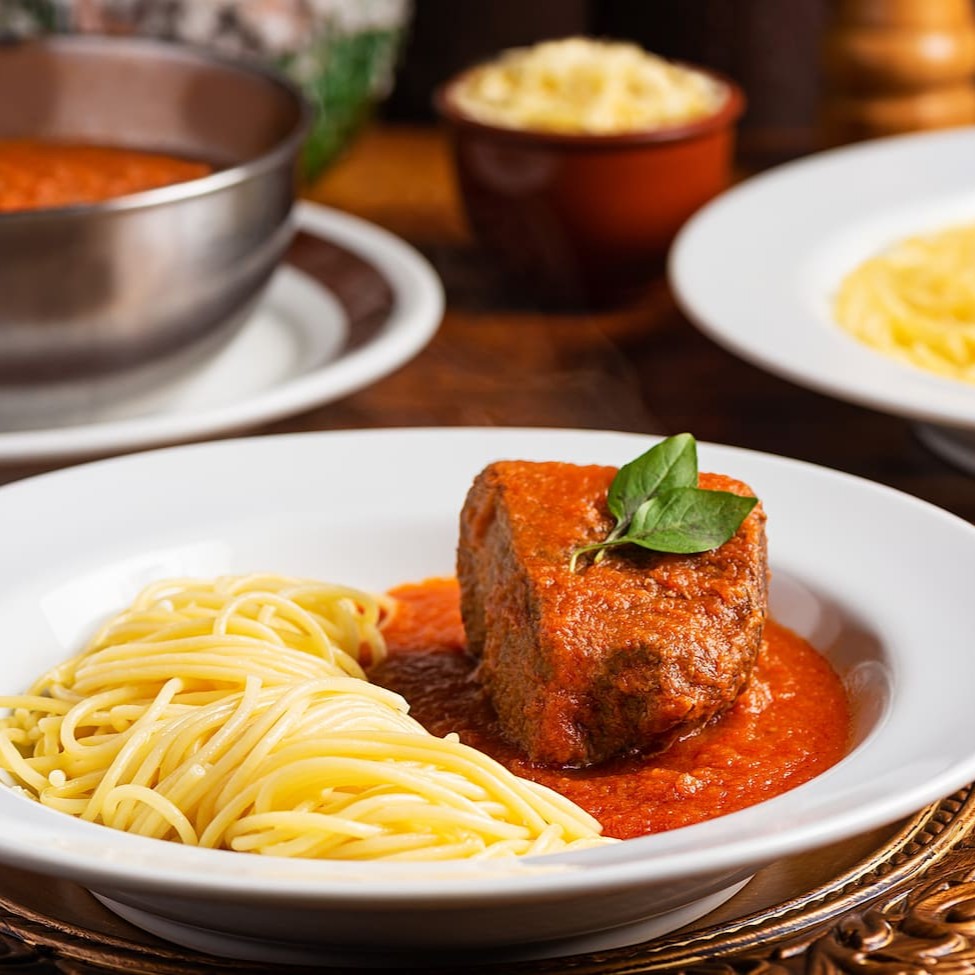 Delicioso Fettuccine, preparado em uma suave manteiga e servido com uma generosa posta desfiada, meticulosamente cozida ao sugo. Este prato encarna a verdadeira essência das massas italianas, trazendo uma combinação de sabores autênticos e ricos que satisfazem o paladar. Cada garfada é uma viagem à Itália, combinando a textura perfeita do Fettuccine, a cremosidade da manteiga e a suculência da posta ao sugo. Uma verdadeira maravilha gastronômica à sua espera.