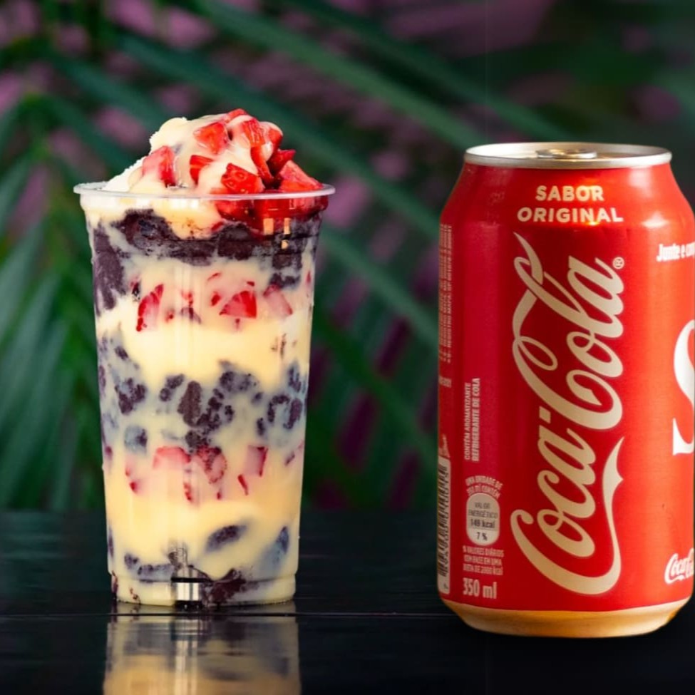 Açaí Super Cremoso Acompanhado de Leite Condensado, Leite Ninho e Morangos Frescos Acompanhada de Coca Cola 350ml Geladinho !!