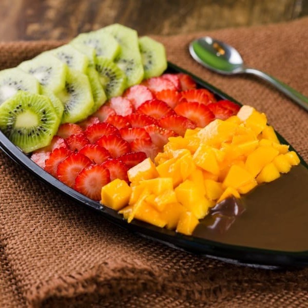 Açaí Super Cremoso Acompanhado de Leite Condensado, Leite Ninho e Manga Fresca.