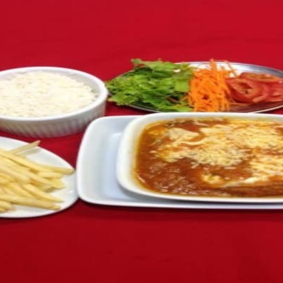 Acompanha batata frita e arroz