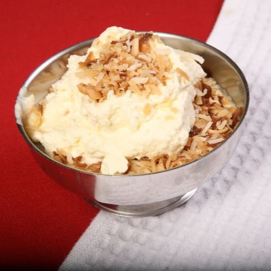 Creme de baunilha com coco queimado e nata