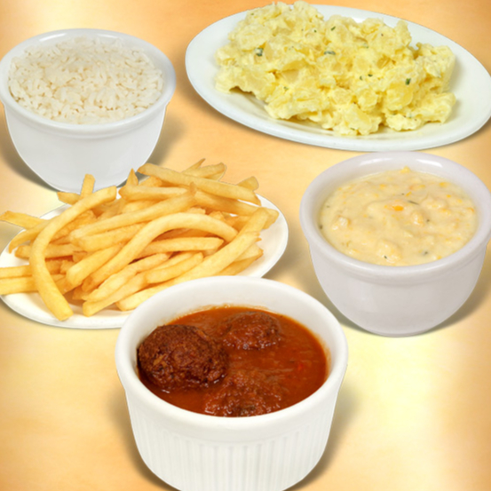 Arroz, batata frita e salada + Pepsi Lata ou Guaraná Lata
