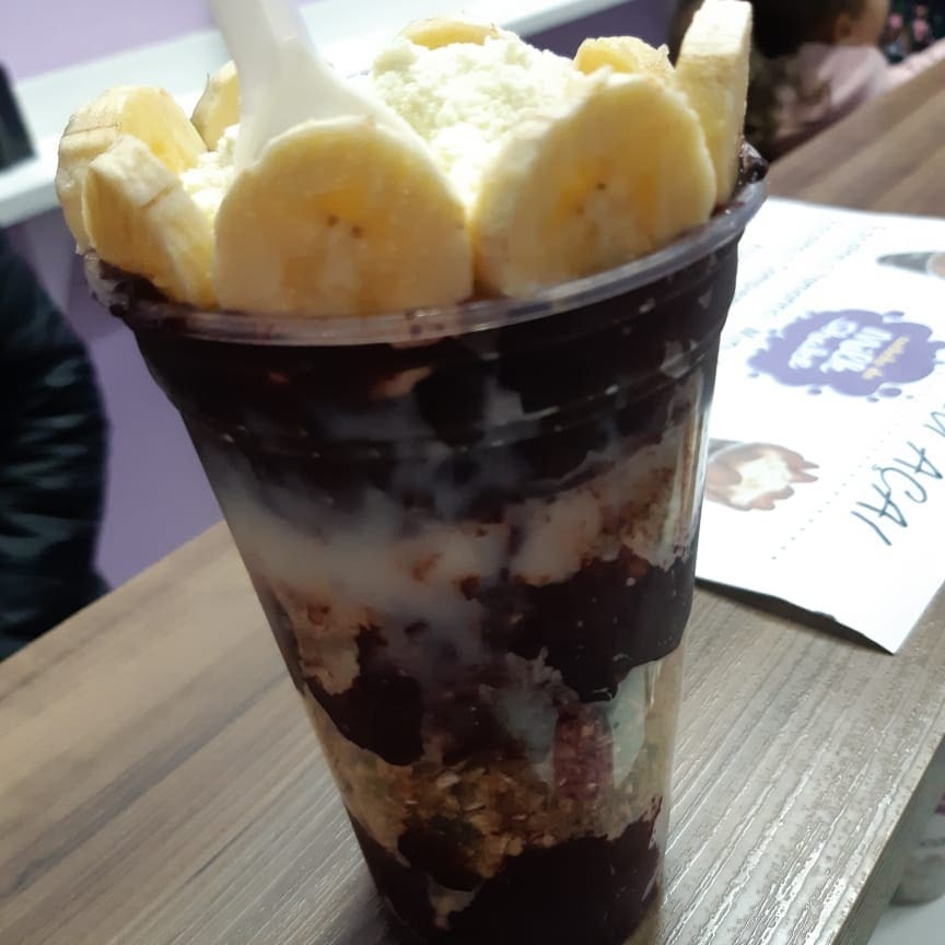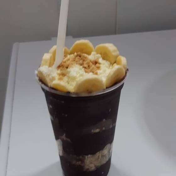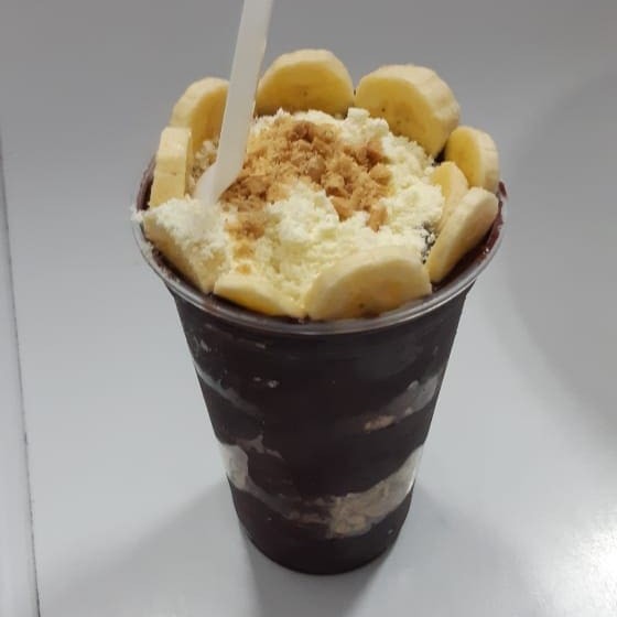 Açaí e cupuaçu 400ml Banana, leite Condensado, leite em pó, granola, amendoin.