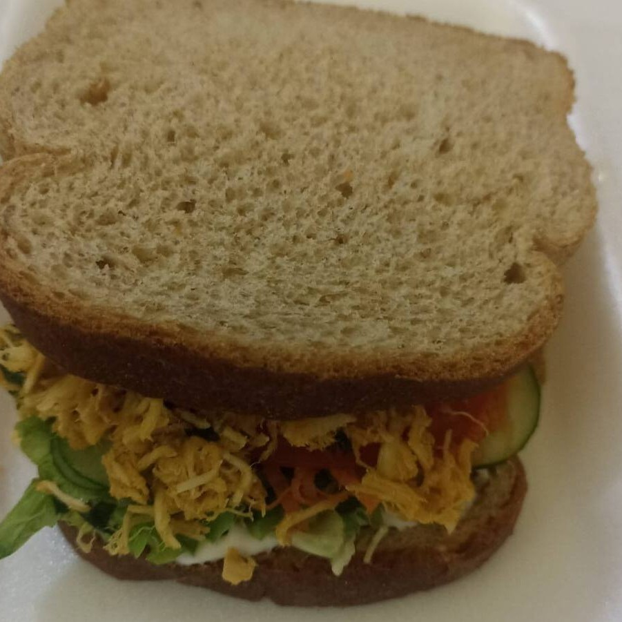 Sanduiche Natural requeijão, pão integral, alface, tomate, cenoura, pepino, Frango desfiado.