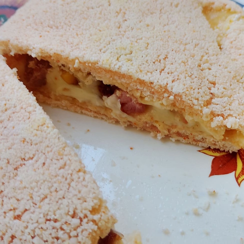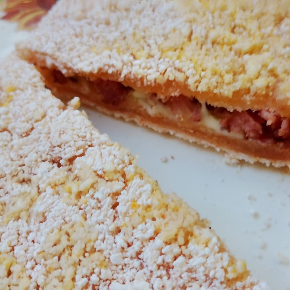 Preparada no capricho!!! Recheada com bacon frito, milho e queijo mussarela. A goma utilizada é artesanal, criada pelo pai. Macia, saborosa e com um tom levemente rosado. Temos complementos para recheio adicional (risco de não fechar a tapioca rsrsrs) ou substituição do queijo normal por queijo zero lactose.