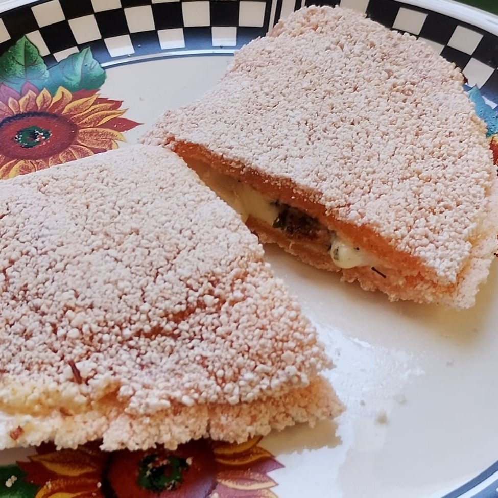 Clássico gaúcho. Recheada com doce de leite e queijo mussarela. A goma utilizada é artesanal, criada pelo pai. Macia, saborosa e com um tom levemente rosado. Temos complementos para recheio adicional (risco de não fechar a tapioca rsrsrs) ou substituição do queijo normal por queijo zero lactose. Infelizmente apenas o queijo pode ser zero lactose, os outros ingredientes não são livres de lactose.