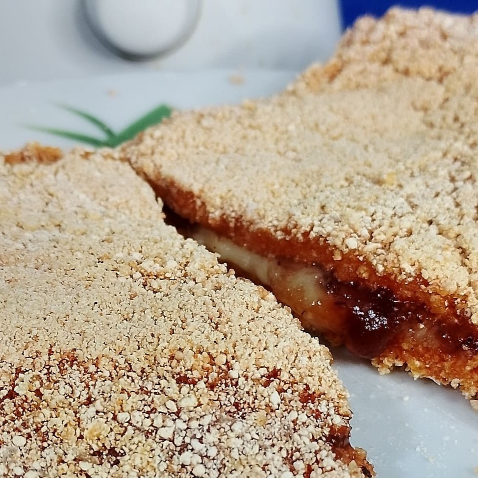 O sabor da serra do mar!!! Recheada com creme especial de banana e queijo mussarela. A goma utilizada é artesanal, criada pelo pai. Macia, saborosa e com um tom levemente rosado. Temos complementos para recheio adicional (risco de não fechar a tapioca rsrsrs) ou substituição do queijo normal por queijo zero lactose.