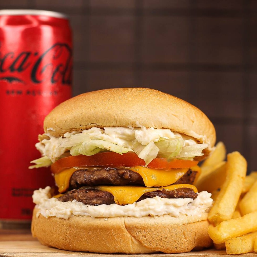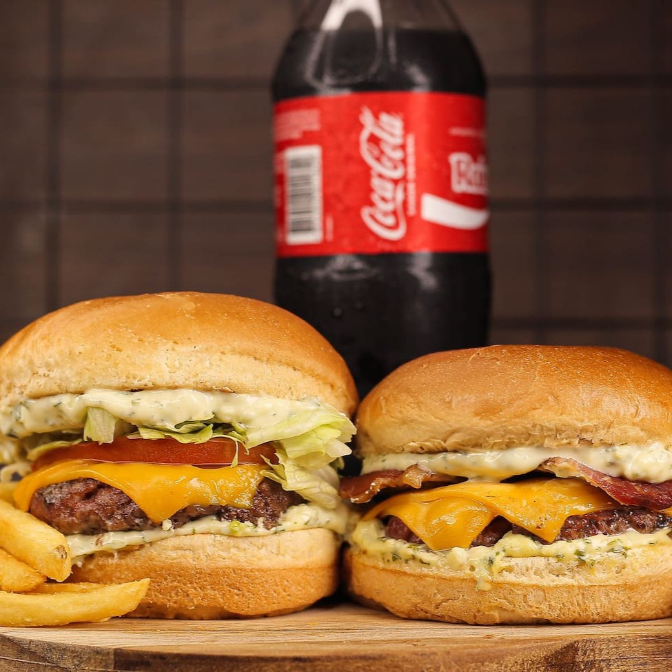 2 Burgers artesanais a sua escolha + 1 porção + 1 coca 600ml