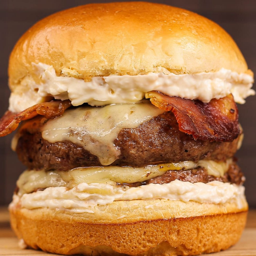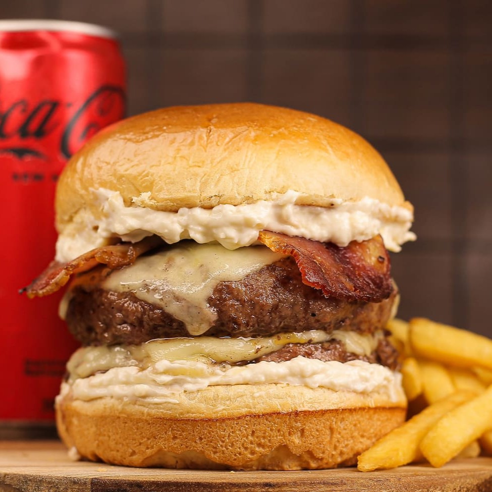 Pão brioche, 2x carnes artesanais bovina 160g (in natura) grelhada no fogo, 2x fatia de queijo mozarella, bacon crocante e molho parmesão da casa.