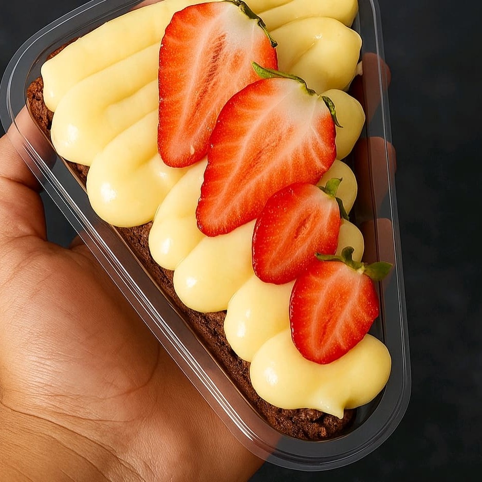 Fatia Gourmet de Brownie – Leite Ninho com morango Uma explosão de sabor em cada pedaço! Nossa fatia de brownie úmido e intenso é coberta com um generoso brigadeiro cremoso de leite Ninho, finalizada com morangos fresquinhos Perfeita para quem ama um doce elegante, caprichado e feito com carinho. Ideal para presentear ou se presentear. Embalado com todo cuidado para chegar perfeito até você. Peça agora e sinta o prazer de um doce premium!