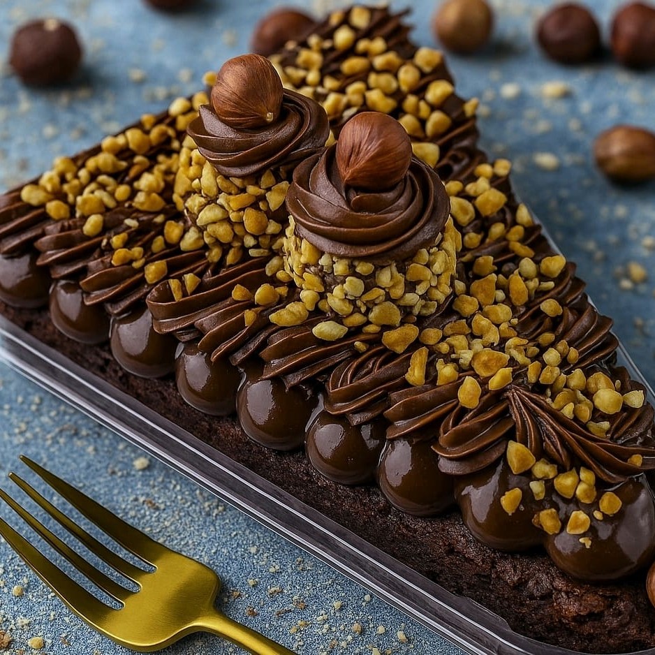 Brownie Ferrero Rocher Uma experiência intensa e sofisticada: base de brownie úmido com brigadeiro cremoso meio amargo, camada generosa de Nutella Original e finalização com dois brigadeiros estilo Ferrero Rocher. Coberto com crocante de amendoim e avelãs inteiras para um toque irresistível. Um presente perfeito ou um mimo inesquecível pra você!
