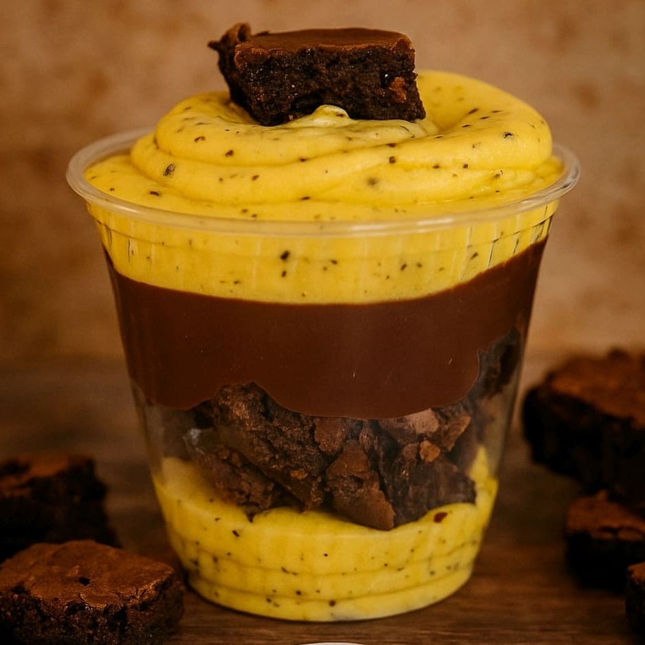 Prepare-se para se apaixonar! Nosso Brownie no Pote combina camadas generosas de brownie artesanal com massa de chocolate meio amargo — úmido, intenso e simplesmente viciante. O equilíbrio perfeito entre o doce e o amargor do chocolate que derrete na boca. Ideal para os verdadeiros chocólatras de plantão! Feito com ingredientes selecionados e muito amor. Pronto para entrega, fresquinho pra você!