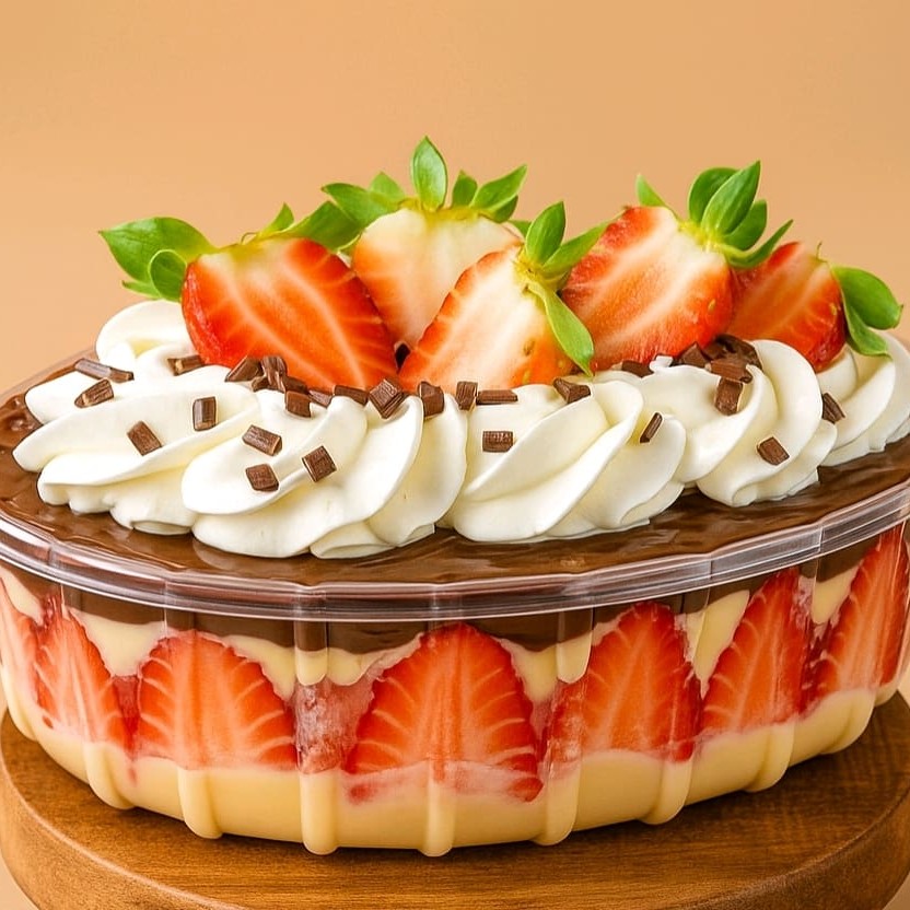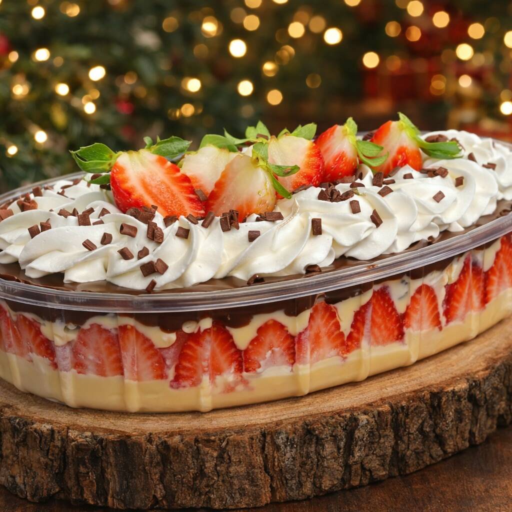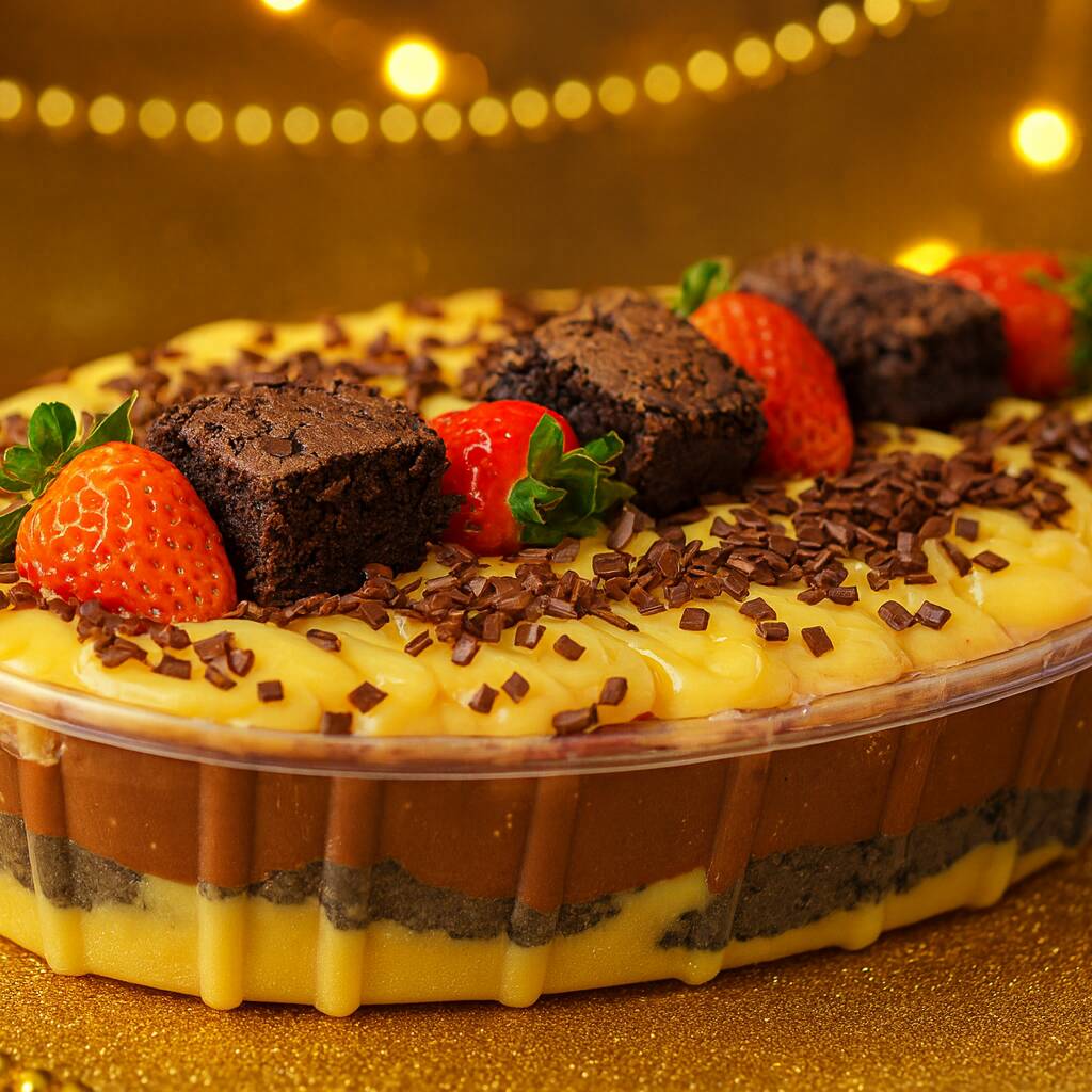 2 kilos de Nossa sobremesa é montada em camadas generosas de brigadeiro cremoso de Leite Ninho, combinadas com pedaços de brownie artesanal e morangos frescos picados. No centro, um toque marcante de brigadeiro meio amargo traz o equilíbrio perfeito entre doçura e intensidade, deixando cada colherada ainda mais especial. Para finalizar, uma deliciosa cobertura de creme de Leite Ninho, decorada com morangos inteiros e cubinhos de brownie, garantindo um visual encantador e um sabor irresistível. É a escolha ideal para quem ama sobremesas frescas, cremosas e feitas com capricho — perfeita para qualquer ocasião ou para matar aquela vontade de um doce especial.