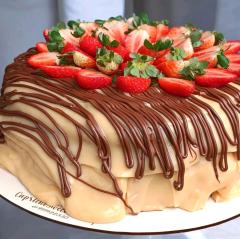 Sobremesa de Leite Ninho com Morangos e Brownie Camadas generosas de creme de leite Ninho super cremoso, muitos morangos frescos picados e brownie macio no meio. Recheada com brigadeiro cremoso de chocolate meio amargo, finalizada com ganache de chocolate, chantininho e morangos frescos para decorar. Uma sobremesa intensa, equilibrada e perfeita para compartilhar. Peso aproximado: 2kg.