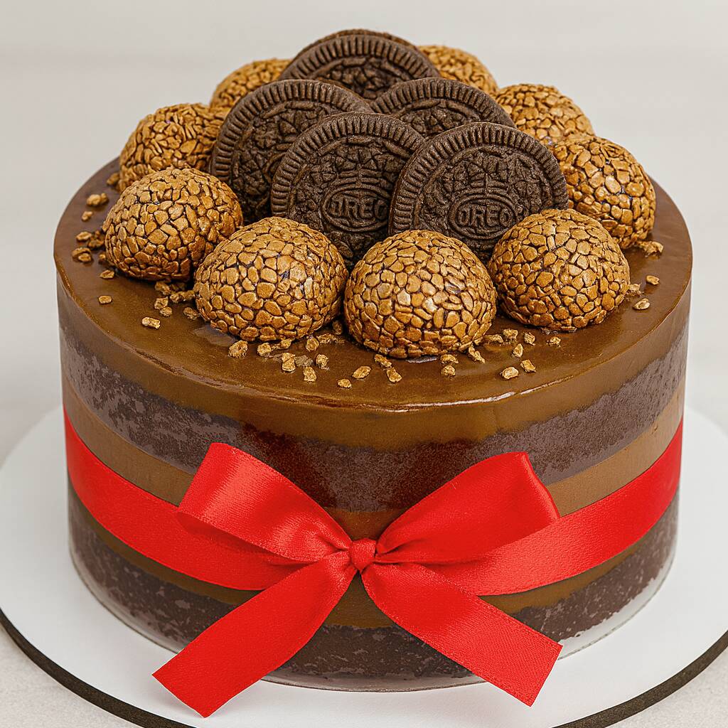 Bolo Chocolatudo – Pronto pra Encantar Qualquer Ocasião Seja para aniversário, comemoração especial ou até aquele momento em que a gente esquece de comprar um bolo e precisa de algo gostoso a pronta entrega, aqui você encontra o chocolatudo perfeito. Esse bolo tem aproximadamente 1kg e 20g, feito com massa de chocolate meio amargo, fofinha e saborosa. É recheado e decorado com um brigadeiro super cremoso, daqueles que derretem na boca, e finalizado com biscoitos de Oreo, que dá o contraste perfeito entre cremosidade e crocância. Ele serve em média 6 pessoas, sendo ideal para dividir com quem você ama ou simplesmente aproveitar um momento doce do seu Dia. Um bolo lindo, caprichado e com aquele sabor que abraça — tudo isso prontinho para te salvar nas horas corridas e tornar qualquer ocasião mais especial.