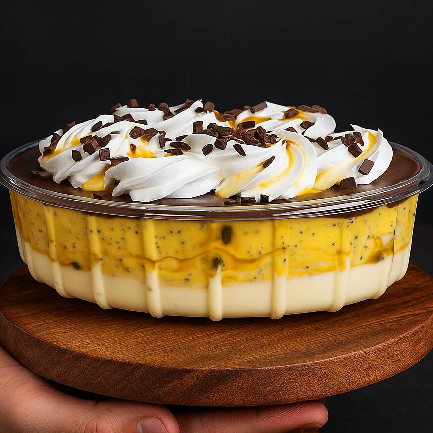 Um bolo perfeito para quem ama leveza e sabor! Feito com massa macia e molhadinha de baunilha, recheio cremoso e equilibrado de maracujá, e finalizado com uma cobertura ultra aveludada de leite ninho, esse bolo ainda recebe uma chuva de granulados de chocolate branco que derretem na boca. Uma combinação suave, fresca e irresistível — daquele tipo que conquista no primeiro pedaço. Aproximadamente 1,200kg servindo 6 pessoas, perfeitos para aniversários ou qualquer ocasião