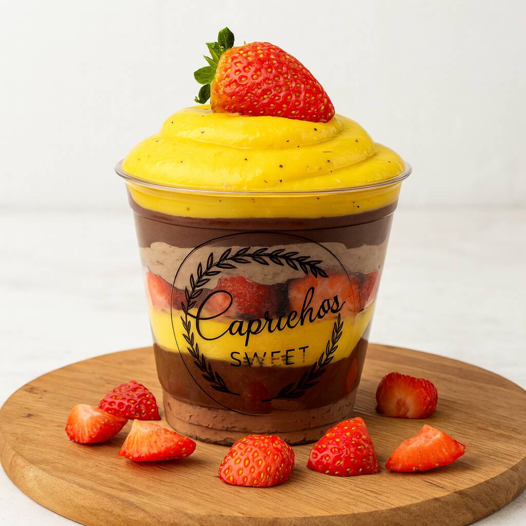 Copo Da Felicidade Pudim + Morango + 2 Amores + Brownie