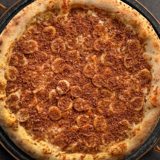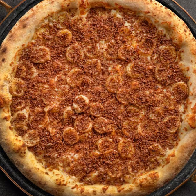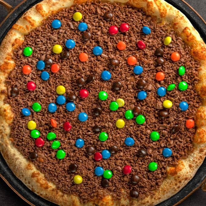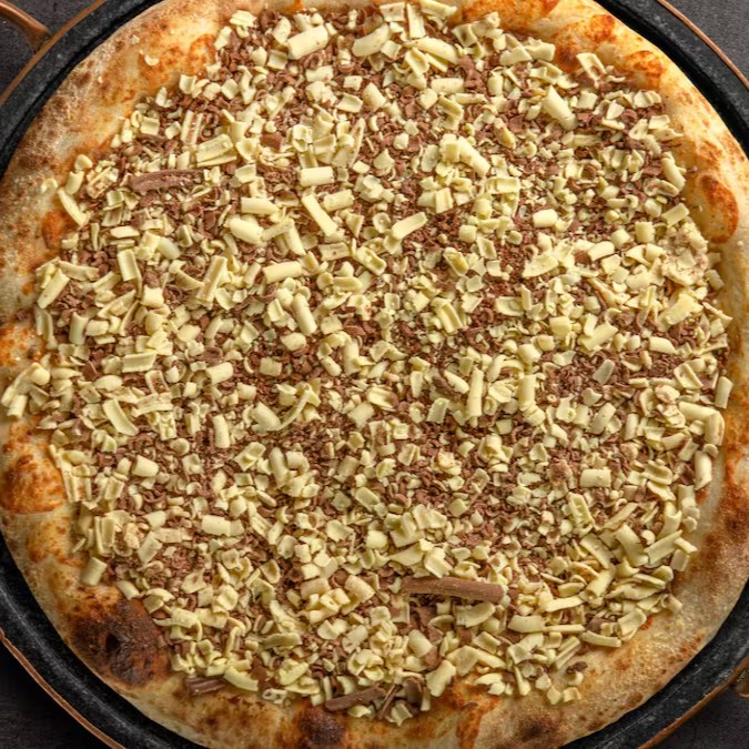 Na compra de uma pizza grande com uma massa deliciosa, leve uma pizzeta doce por apenas 9,90.