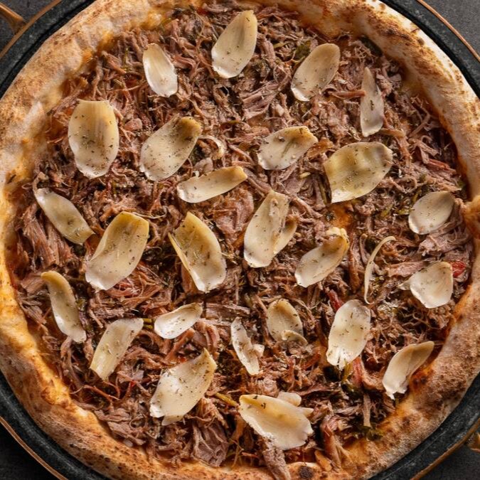 Nossa nova criação traz o sabor inigualável da Costela Fogo de Chão com Selo Artesanal, combinada com ingredientes de qualidade e preparo único. Com massa de longa fermentação (72h), levemente crocante e de textura inconfundível, essa pizza é coberta com molho de tomate pelati importado, puro e saboroso. A suculência da costela, assada lentamente, é potencializada pelo toque especial do molho de chimichurri feito artesanalmente e pelo sabor levemente defumado da alcachofra na brasa. Uma explosão de sabor que você precisa provar!