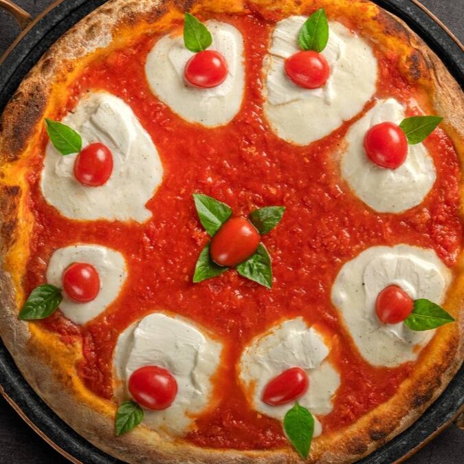 Uma Pizza a Toda Prova, Para os Amantes da Tradição Italiana, Generosa Porção de Molho, Queijo Burrata de Búfala, Tomate Cereja e Basílico.