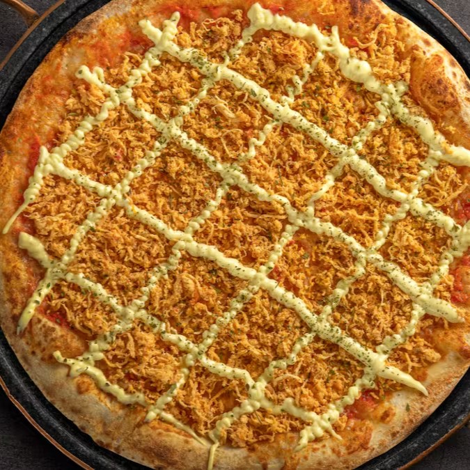 Mozzarela, Molho, Frango desfiado e Catupiry