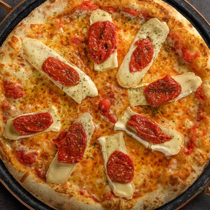 Mozarella, Molho, Queijo Brie, Coberta com Tomates Secos.