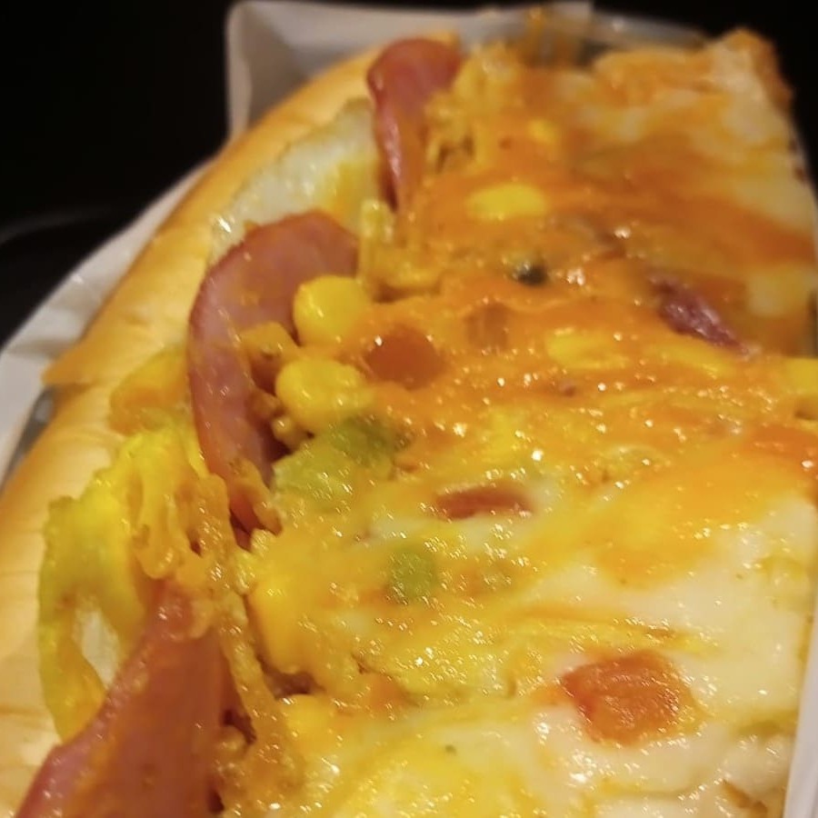 Pão com média de 23cm 2 vinas Bacon Calabresa Frango Cheddar Catupiri Queijo mussarela Presunto Lombinho canadense Ovo Cebola Milho Ervilha Tomate Farofa Batata palha Maionese caseira Maionese verde Maionese tradicional