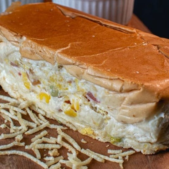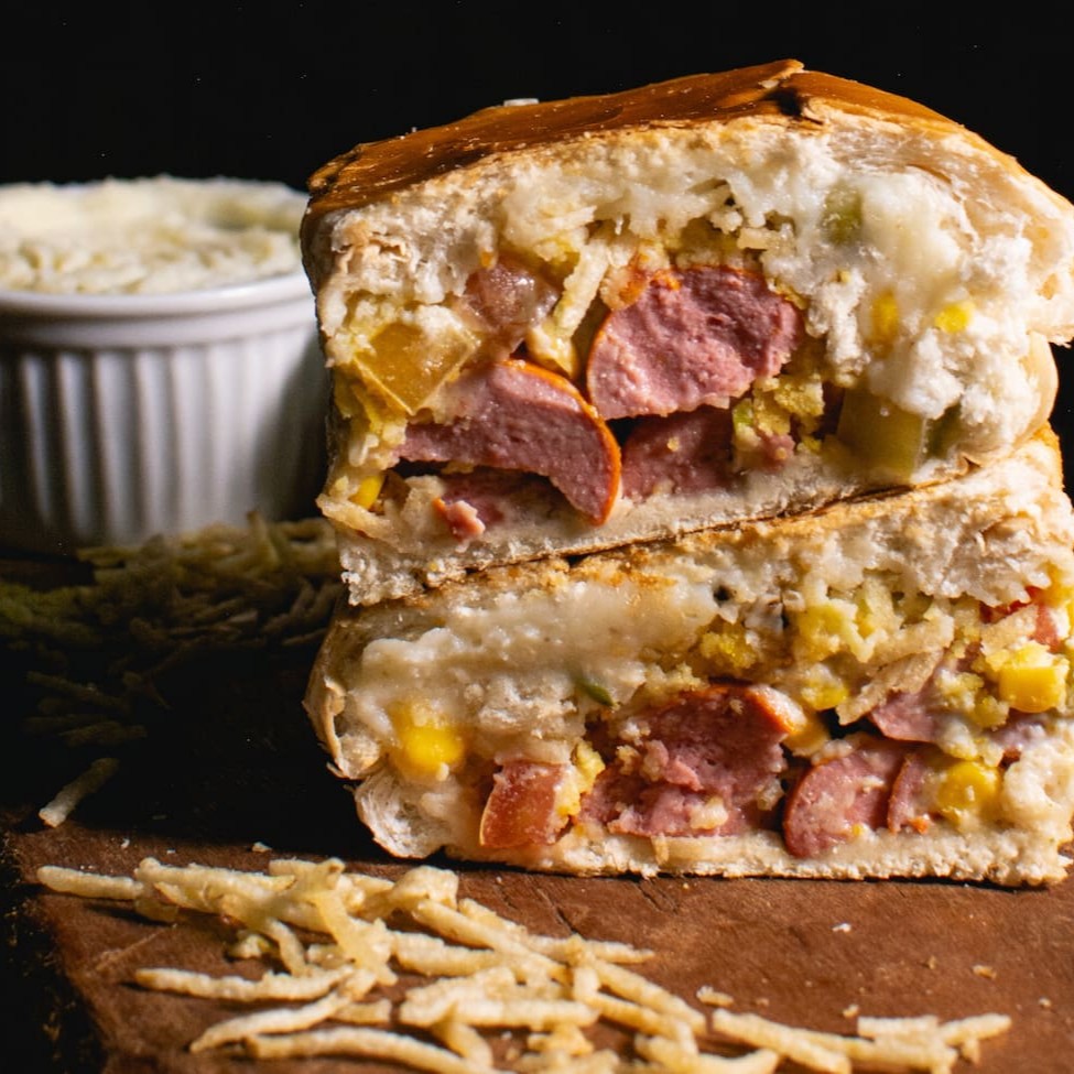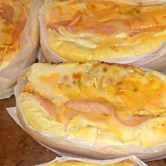 Pão Macio média de 23cm 2 vinas Bacon Calabresa Frango Cheddar,Queijo mussarela,Cebola Milho Ervilha Tomate Farofa Batata palha Maionese caseira