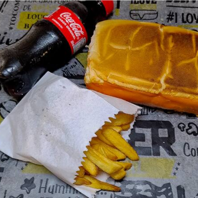 Esse combo acompanha o nosso delicioso Hot Dog de Bacon com cheddar (Pão Macio,1 salsicha perdigão, bacon cubos frito, cheddar cremoso, cebola,tomate,milho,ervilha, farofa crocante,batata palha e finalizado com a nossa deliciosa maionese artesanal). 1 Porção de fritas 100 g 1 Coca-Cola 200 ml