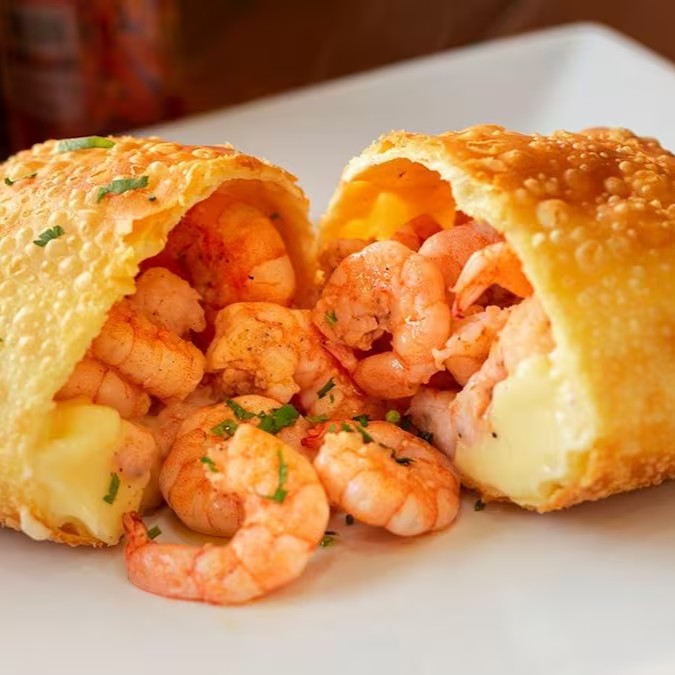 Camarão branco grelhado com ervas finas, cream cheese e mussarela.