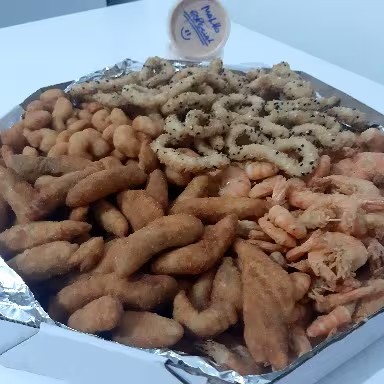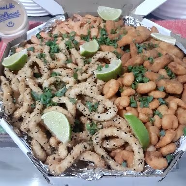500gr Camarão paulista, 250gr camarão milanesa 500gr de isca de tilápia à milanesa e 250gr de Aneis de Lula do Chef. Acompanha molho especial da casa da casa. Total 1.5kg