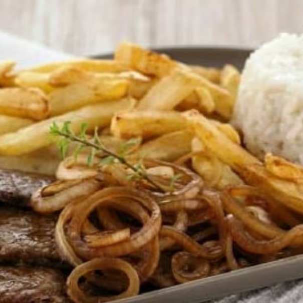 Contra Filé Com Cebola Caramelizada