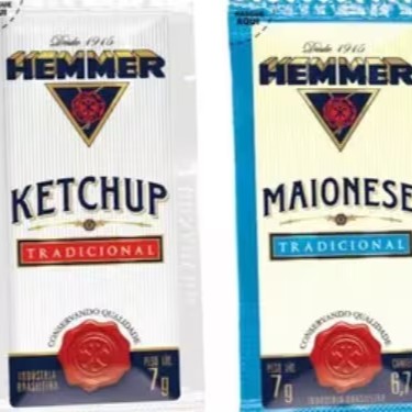 2 unidades de maionese, 2 unidades de ketchup, 2 unidades de Mostarda
