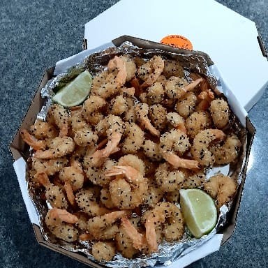 Camarão branco limpo, empanado na farinha Panku e gergelim e frito, acompanha maionese caseira da casa. 500gr