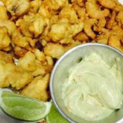 Camarão branco limpo, empanado na farinha de rosca e frito, acompanha maionese caseira da casa. 500gr