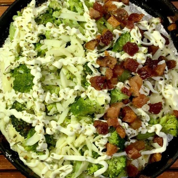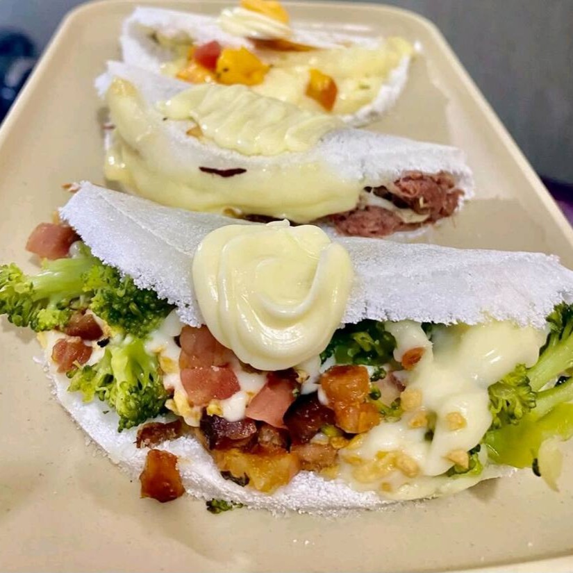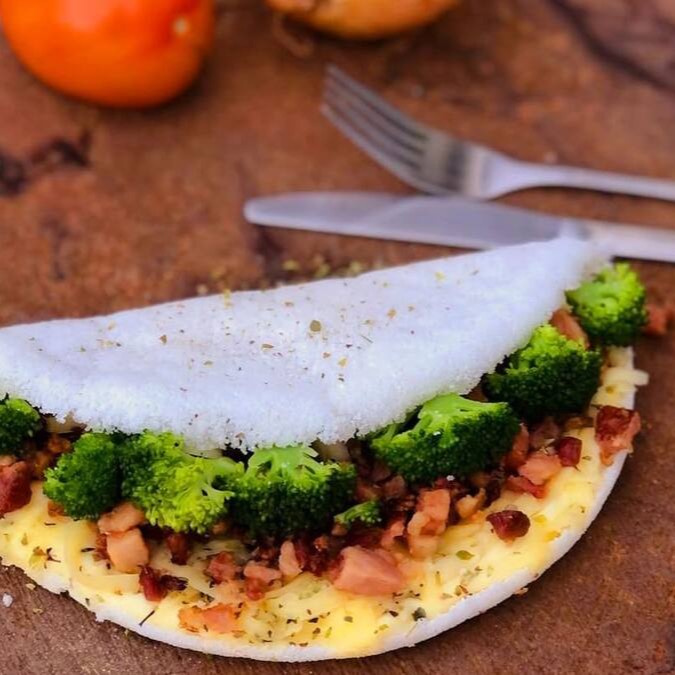 Deliciosa Tapioca 100% Artesanal Recheda com, Brócolis, Bacon em Cubos e Queijo Mussarela.