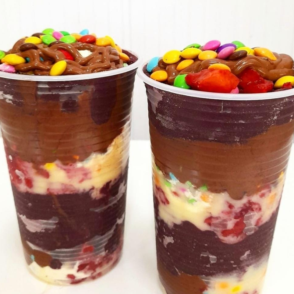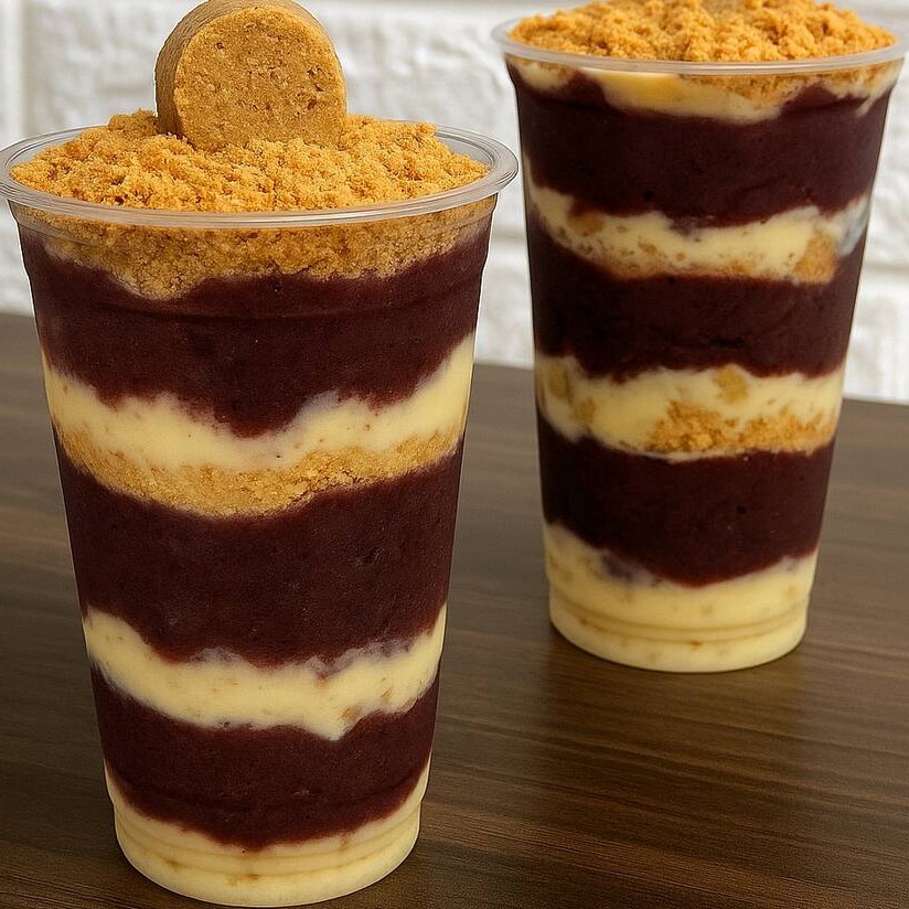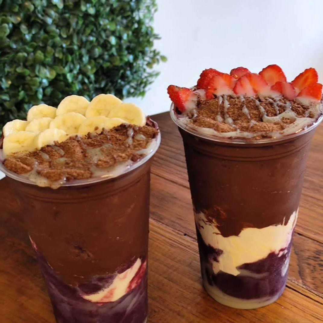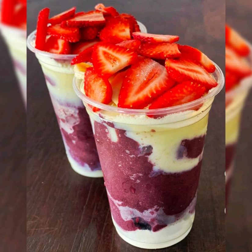 2 Copos de Açaí super refrescante, acompanha leite Condensado, Morango, Leite em Pó Ninho e Creme de Ninho.