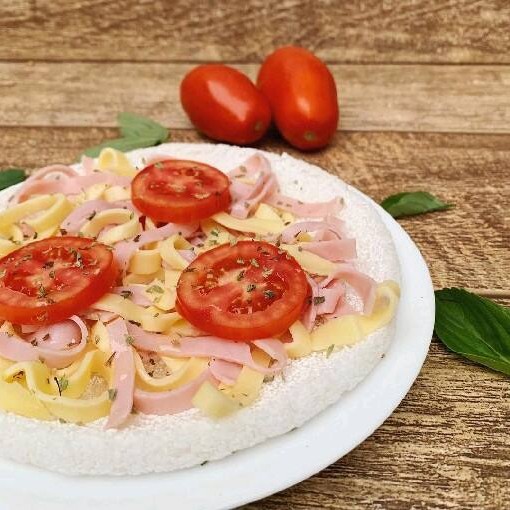 Massa 100% Artesanal Recheada com Queijo Mussarela, Presunto, Tomate e Molho de Tomate.