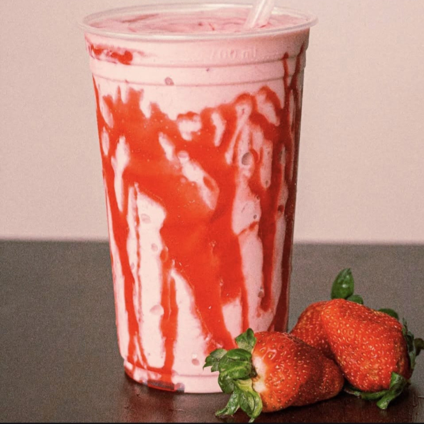 Açaí cremoso combinado com Mousse de Morango, Morango, Creme de Avelã , Chocolate ao Leite Em Gotas e Leite Condensado.