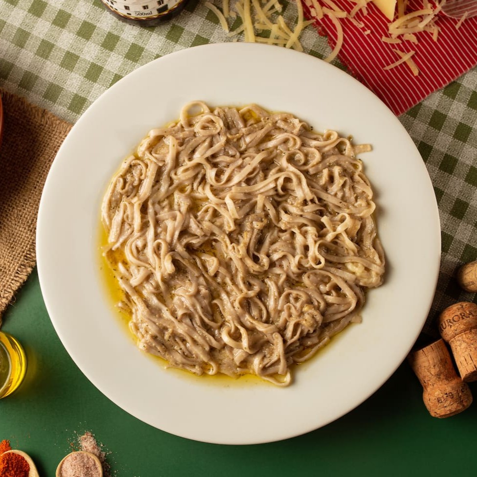 Massa caseira artesanal a base de farinha e ovos. Porção de 500 gramas para 2 pessoas