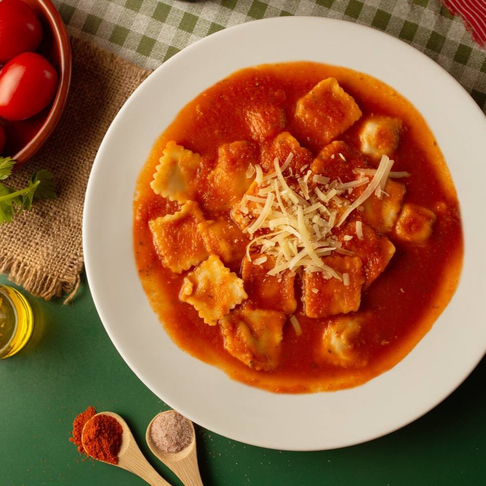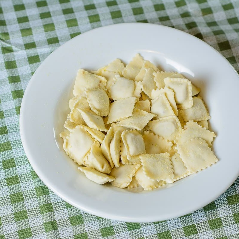 Massa caseira artesanal a base de farinha e ovos recheada com ricota ou carne.