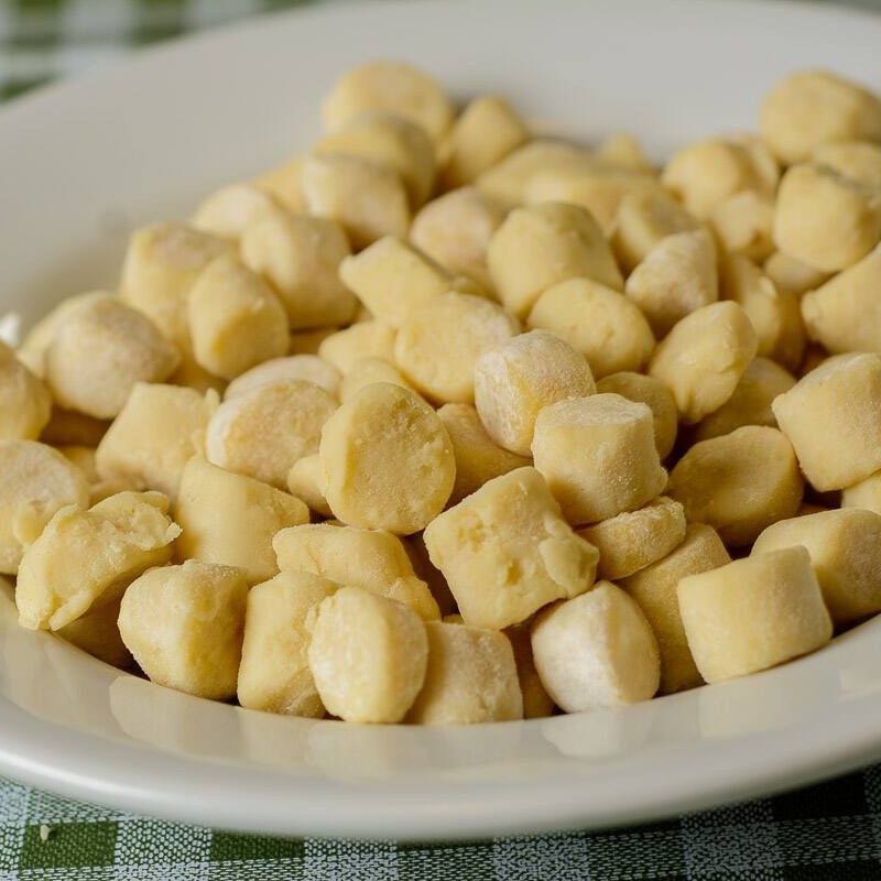 Massa caseira artesanal a base de batata inglesa e farinha. Porção de 500 gramas para 2 pessoas