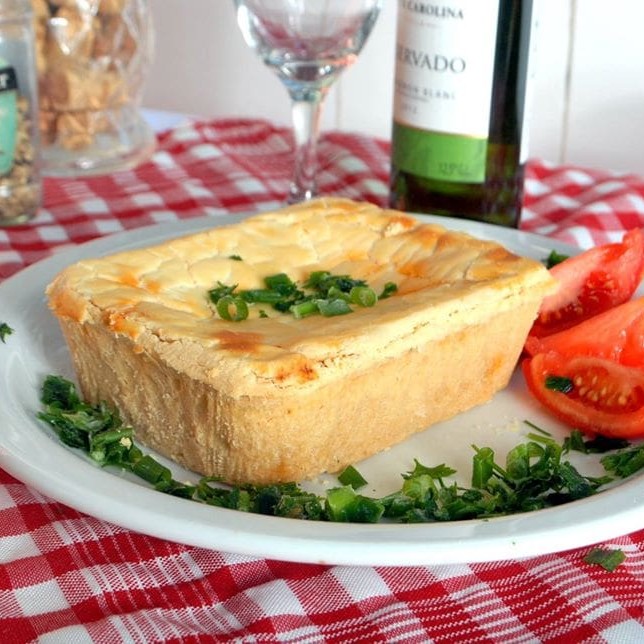 Massa caseira artesanal a base de margarina e farinha recheada na forma de alumínio para aquecimento no forno.