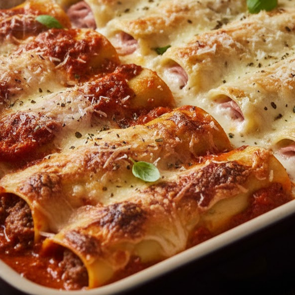Massa fresca artesanal em formato de tubos, recheio generoso de carne bovina refogada com ervas ou a clássica combinação de presunto e queijo muçarela, coberta com molho de tomate caseiro ou bechamel cremoso, finalizada com queijo parmesão ralado e gratinada ao forno para atingir a suculência perfeita.