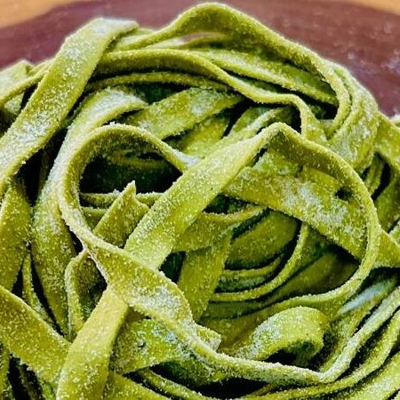 Fettuccine na massa caseira com espinafre com molho e parmesão peso: aproximadamente 1kg serve 2 pessoas embalagem para aquecimento no forno ou micro-ondas